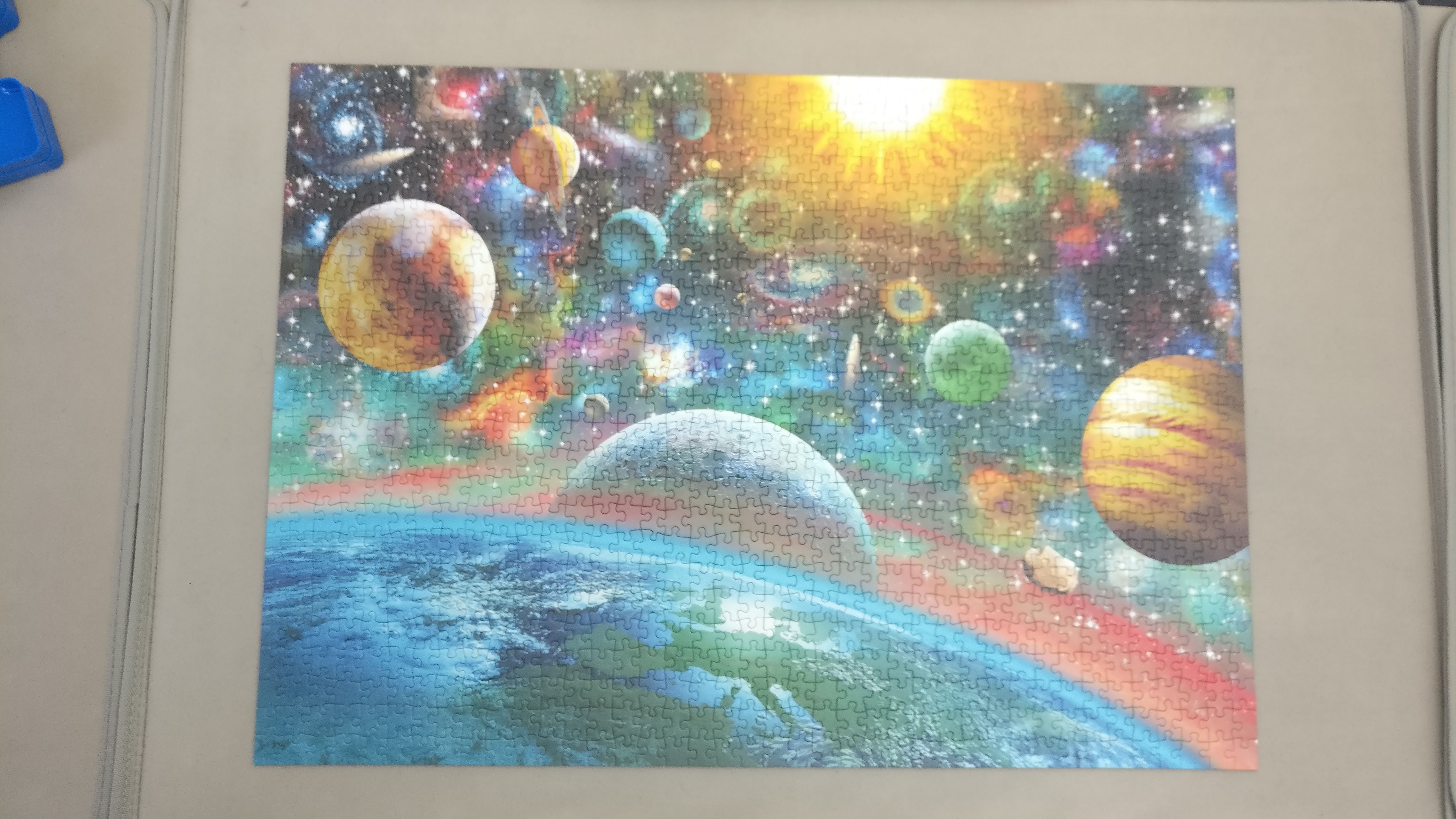 Das Motiv… ja. Läßt sich leicht legen, weil es viele große, eindeutig benusterte Bereiche gibt. Klar, die kleineren Planeten brauchten etwas länger, aber im Grunde war das Puzzle schnell gelegt.
