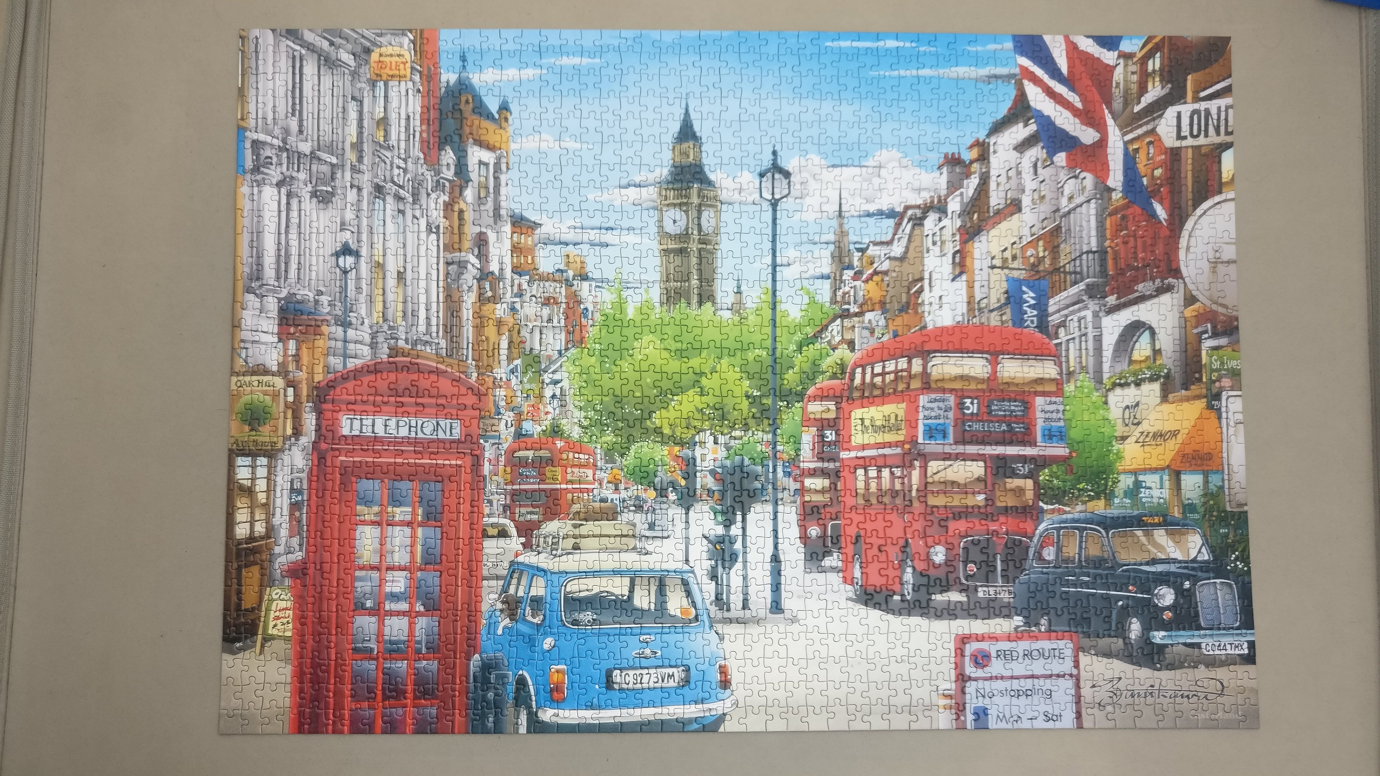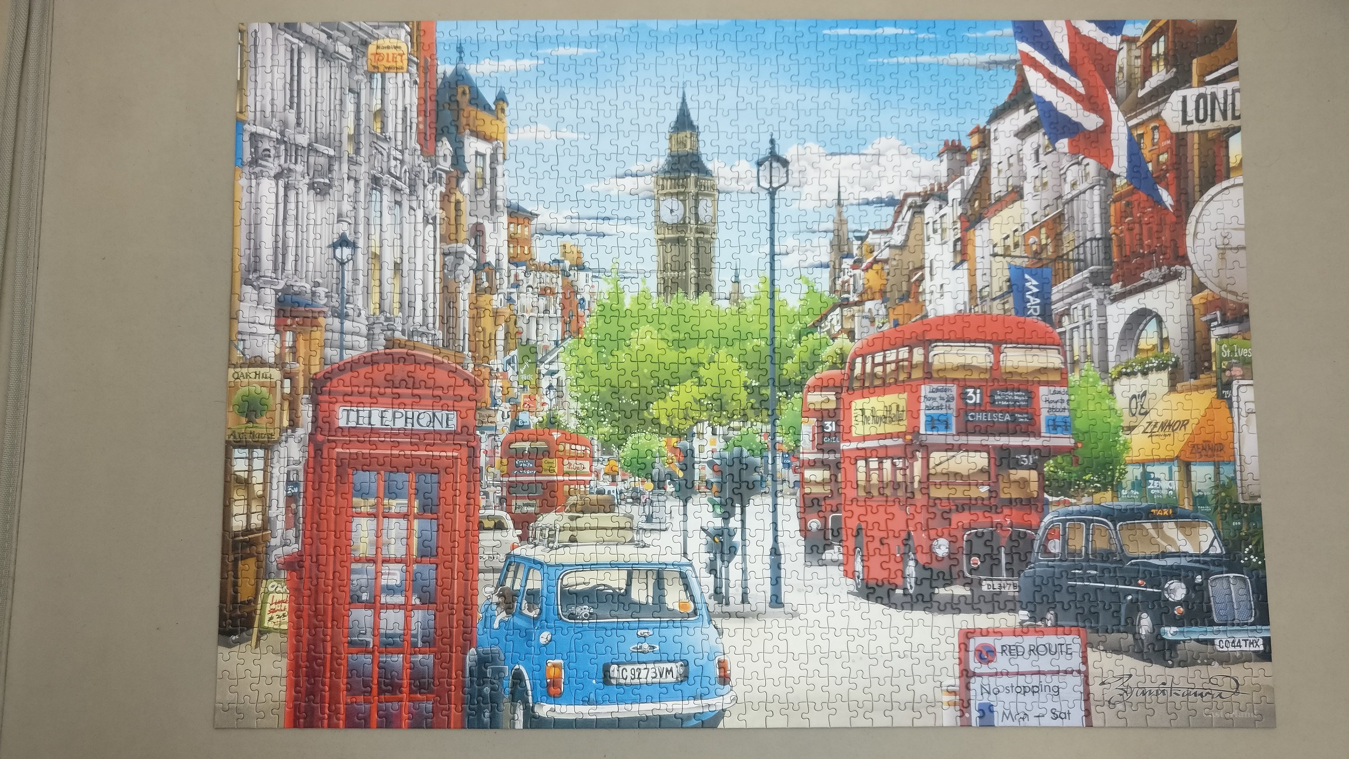 Eigentlich sollte man bei dem Motiv denken, dass das Puzzle schnell gelegt ist, jedoch sind die Puzzleteile sehr ähnlich, so dass man an der ein oder anderen Stelle lange suchen muss, bis man das richtige Puzzleteil für diesen Platz gefunden hat. Gut ist, dass es trotz der ähnlichen oder gleichen Puzzleteile es keine Unklarheiten gibt, selbst bei den ähnlich hellblau gefärbten Teilen im Himmel oder die beigefarbene Straße: die gleichen puzzleteile passen dann doch nur eine Stelle. Das ist gut gelöst.