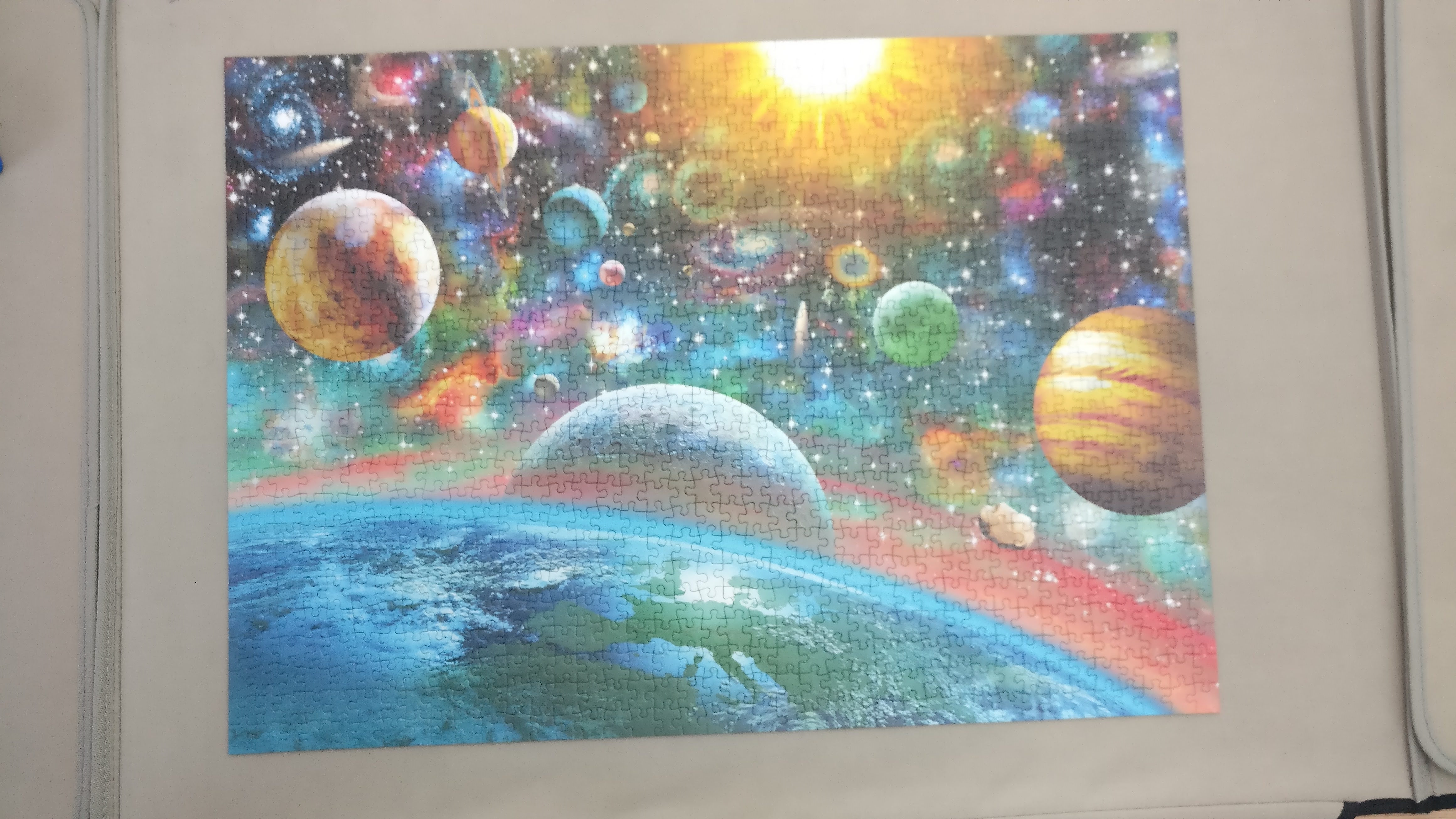 Das Motiv… ja. Läßt sich leicht legen, weil es viele große, eindeutig benusterte Bereiche gibt. Klar, die kleineren Planeten brauchten etwas länger, aber im Grunde war das Puzzle schnell gelegt.